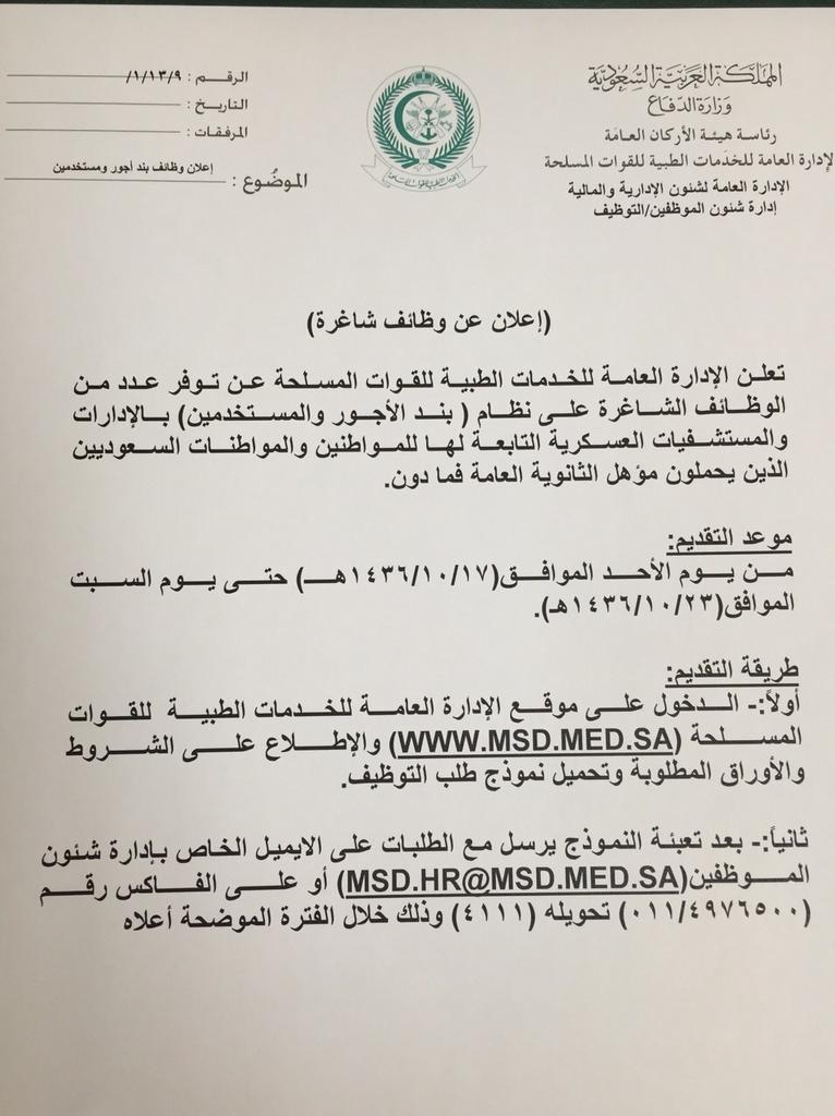 وظائف وظيفه توظيف On Twitter وظائف الإداره العامه للخدمات الطبيه للقوات المسلحه القوات السعودية التفاصيل Http T Co 4jchqakaib