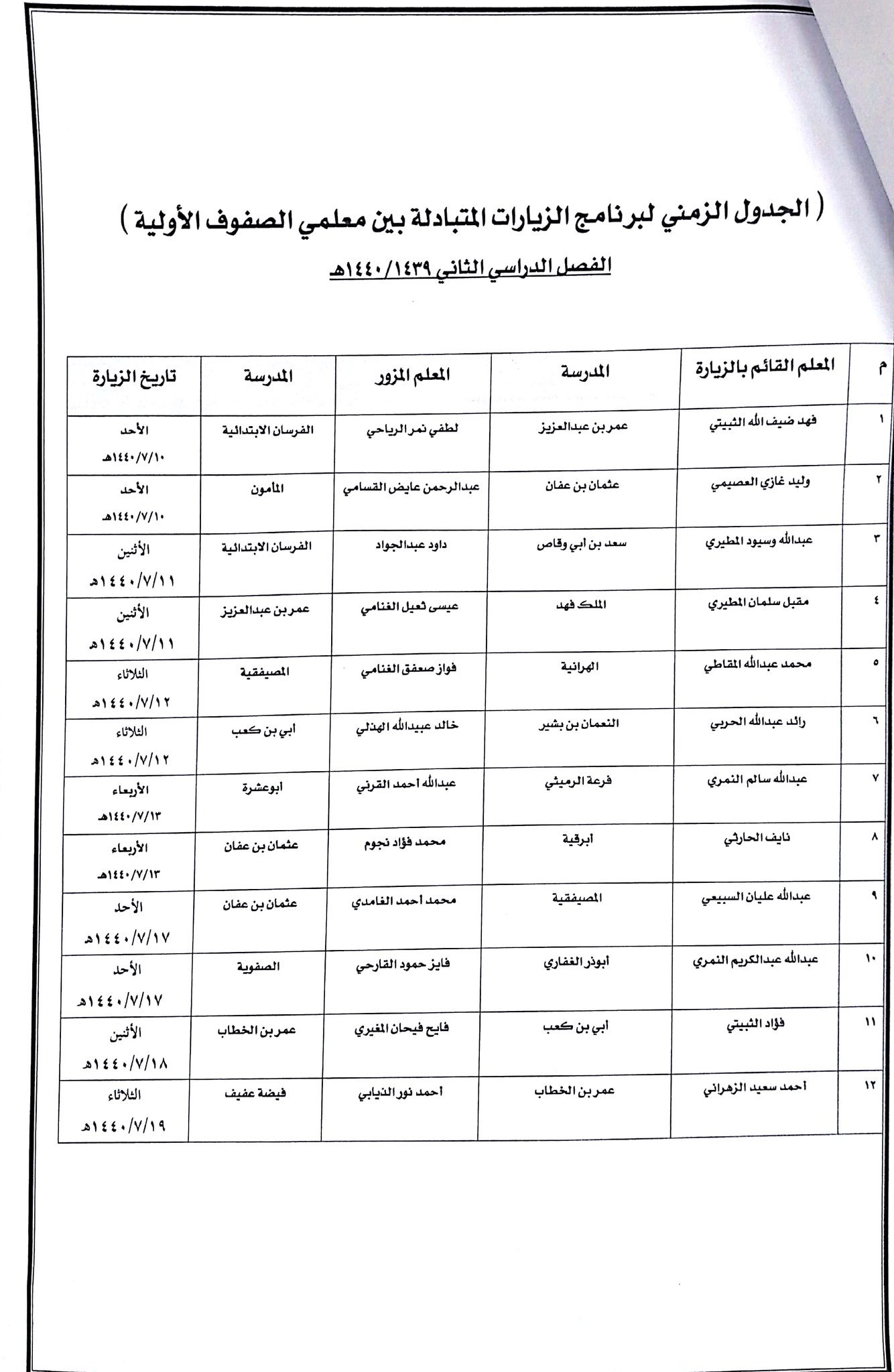 ياسرالغبيوي On Twitter جدول الزيارات المتبادلة